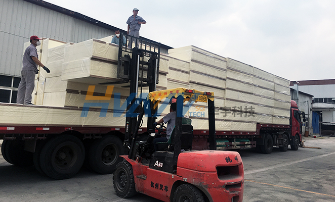 擁有國內從歐洲全套引進的柔性面材夾芯板連續生產線兩條。